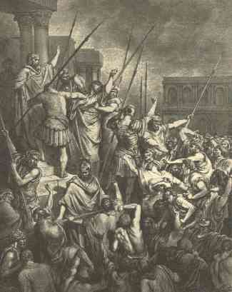 31 | And as they went about to kill him, tidings came unto the chief captain of the band, that all Jerusalem was in an uproar. |