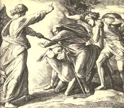 And the ass saw the angel of the LORD standing in the way, and his sword drawn in his hand: and the ass turned aside out of the way, and went into the field: and Balaam smote the ass, to turn her into the way.