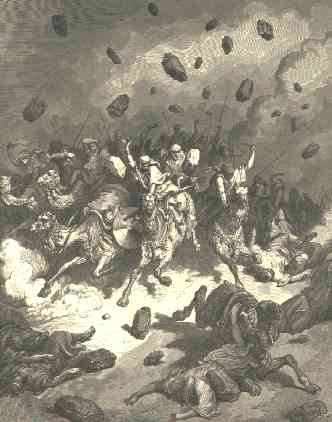 11 | And it came to pass, as they fled from before Israel, and were in the going down to Bethhoron, that the LORD cast down great stones from heaven upon them unto Azekah, and they died: they were more which died with hailstones than they whom the children of Israel slew with the sword.