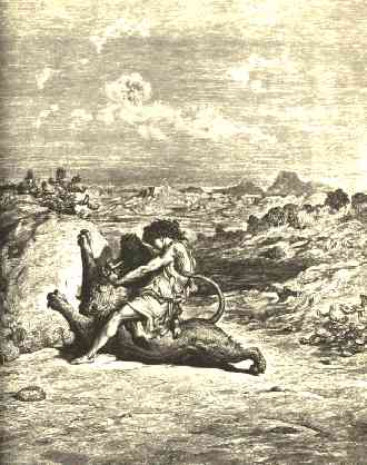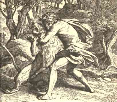 And the Spirit of the LORD came mightily upon him, and he rent him as he would have rent a kid, and he had nothing in his hand: but he told not his father or his mother what he had done.
