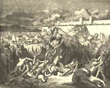31 | And he brought forth the people that were therein, and put them under saws, and under harrows of iron, and under axes of iron, and made them pass through the brick-kiln: and thus did he unto all the cities of the children of Ammon. So David and all the people returned unto Jerusalem. |