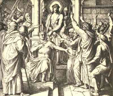 13 | When Pilate therefore heard that saying, he brought Jesus forth, and sat down in the judgment seat in a place that is called the Pavement, but in the Hebrew, Gabbatha. |