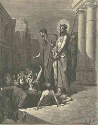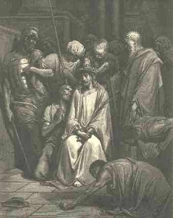 5 | Then came Jesus forth, wearing the crown of thorns, and the purple robe. And Pilate saith unto them, Behold the man! |